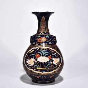 瓷器 明永乐霁蓝釉珐华彩沥粉描金鸳鸯纹花口玉壶春瓶 高45厘米 宽26厘米