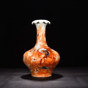 瓷器 民国竹溪道人王步矾红罗汉颂经翻口瓶 高34.5厘米 宽21厘米