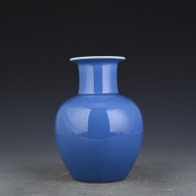 清乾隆天蓝釉盘口瓶 古玩古董古瓷器老货收藏 24×17厘米
