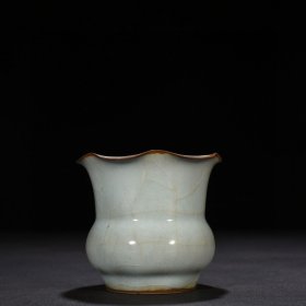 瓷器 宋官窑青白釉花口渣斗 9*10厘米