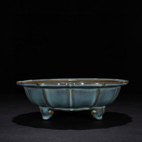 瓷器 宋钧窑天青釉葵口洗 8×25厘米