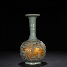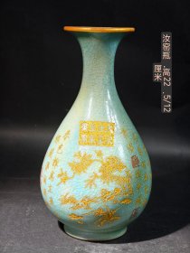 瓷器 宋青龙寺汝窑款沥粉麒麟纹盘口瓶 29*15厘米