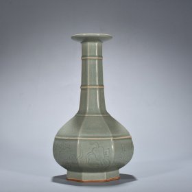 瓷器 五代秘色越窑刻暗八仙盘口瓶 24*13厘米