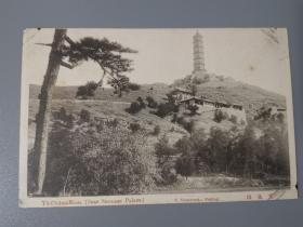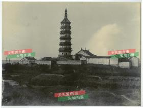 清代安徽安庆长江岸边迎江寺和振风塔大幅银盐老照片一张,与众不同的是,这张为自北向南拍摄,而不是常见的江上自南向北拍摄,展现了迎江寺东北侧建筑的风貌。摄影手法老道画面优美。27.2X20.4厘米