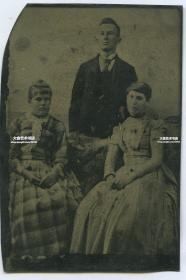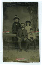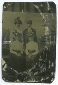 清代锡板摄影照片--照相馆拍摄的150年前一家人,父母亲和他们的两个女儿,女士都戴着一种优雅的帽子,大约相当于中国咸丰年间制作, 锡板照片都是唯一的