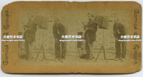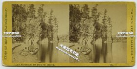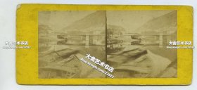 清末民国时期立体照片--1870年代圣克罗伊河的急流、瀑布和峡谷风光蛋白立体照片,可见摄影师拍摄时,被纳入镜头的手工暗房和各种显影药水试剂瓶,150年前摄影装备实景花絮。