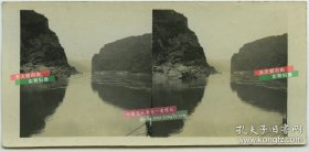 清末民国立体照片----清代外国游客在北京明十三陵游览,有当地农民用滑竿抬游客经过河滩。一百三十年前京郊旅游产业。摄影师自制上色立体照片,比较少见。