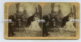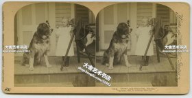 清末民国立体照片----1897年小女孩给狗狗拍照立体照片一张,虽然是趣味立体照片,但中画幅照相机却是真实机型,反映了近一百三十年前社会对摄影活动的热衷。