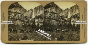 清末民国时期立体照片--清代在美国约塞米蒂国家公园(Yosemite National Park)进行拍摄的摄影师队伍立体照片一张,马队上驮着的是照相机,暗室,显影药品等设备。