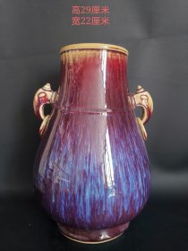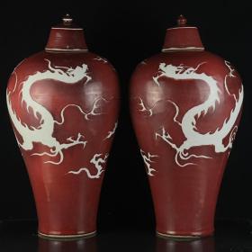元代祭红釉鎏白龙纹双耳瓶尺寸45*24厘米