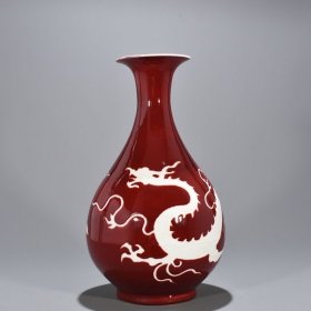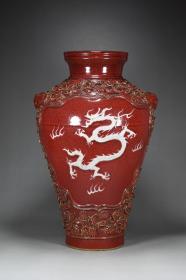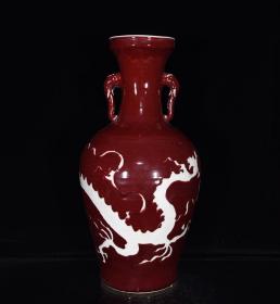 祭红釉白龙纹梅瓶。高50*24。