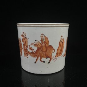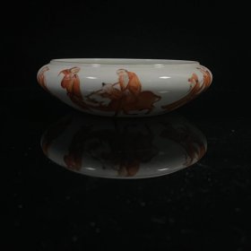 大清乾隆年制款玻璃白釉矾红人物笔洗 高6.5cm,直径22cm