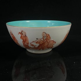 大清乾隆年制款玻璃白釉矾红人物大碗,高9.5cm,直径21.5cm