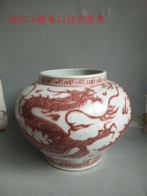 地摊店 元代红釉白许狐窑款蟠龙瓷缸