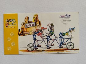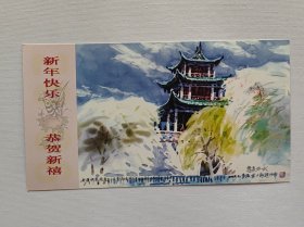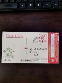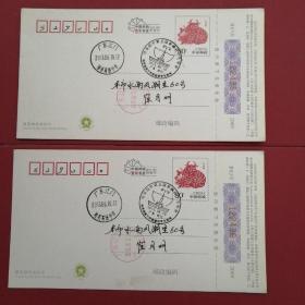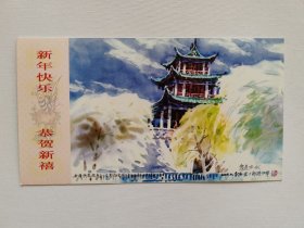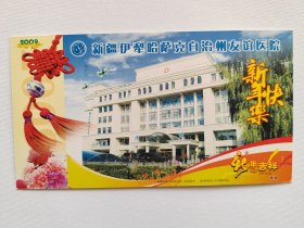 企业金卡 中国邮政贺年有奖明信片,盖:中国探月 新疆千里眼静待嫦娥新疆各族人民热烈庆祝嫦娥一号 2007、10、24、18、05在西昌卫星发射中心发射成功纪念戳及乌鲁木齐天文站(临)邮戳,实寄片。