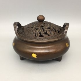 旧藏珍品 纯铜龟鹤延年香薰炉 铜炉 香薰炉文案摆件香炉 色泽雅致,包浆醇厚,古意盎然 规格约:内径6.3厘米 宽3.5厘米 高9.5厘米 重约:520克
