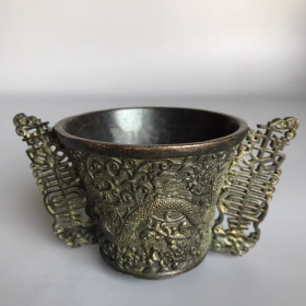 纯铜麒麟摆件一对,高5厘米左右,底座宽3厘米,造型威武霸气,鳞片纹理清晰自然。铜质厚重,包浆醇厚,适合家居装饰或办公室摆放。老物件