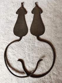 清代花瓶式铜帐钩一对,大气古朴,全品完整,包浆醇厚,长26.5,上面最宽处5厘米,精致,用料厚实,重130克,一套完整,可使用、收藏、古典装饰等。