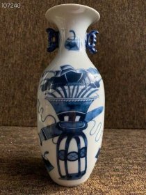 241_清光绪青花瓷小文瓶,画博古插画,平安喜乐寓意好,发色纯正清新,清秀文气素雅,器型规格秀美端庄,瓷细腻洁白无暇,包浆醇厚自然,保存完好如初!