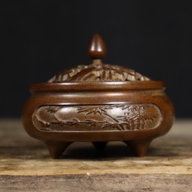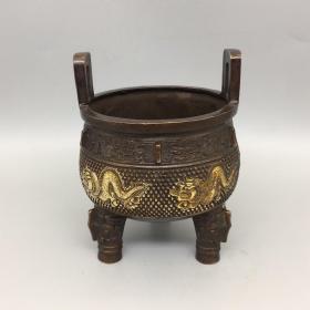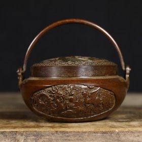 旧藏珍品 苏工纯铜龙凤手提薰炉 色泽雅致,包浆醇厚,古意盎然 造型素雅大方 器型大方,古韵十足,材质细腻莹润 口径:7.6厘米 高度:6厘米 耳距:10.3厘米 重约:430克