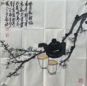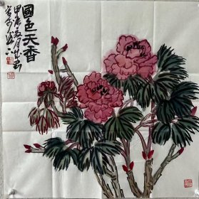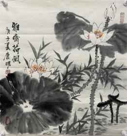 保真书画,得自艺术家本人,范一冰, 68X68cm精品 又名范国荣。现为中国美术家协会会员,中国女画家协会理事。北京市海淀区美术家协会副主席,中国新水墨书画研究会副会长,中国金融美术家协会理事2。