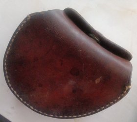 民国或建国初期飞行员用的老风镜,有纯牛皮手工制作专用皮包‘。皮壳自然,包浆老辣,有使用磨损。风镜完整无缺,有使用磨损。只是因年代久远松紧带失去弹性。