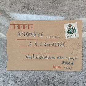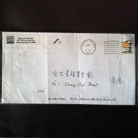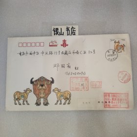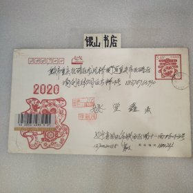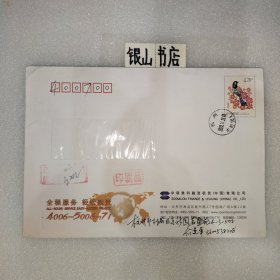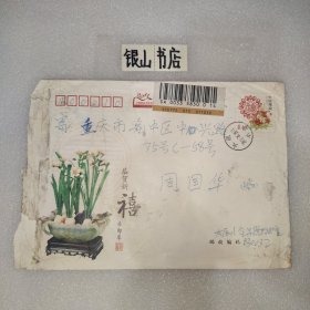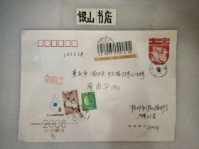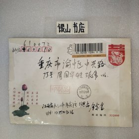 实寄封:2000年.广州市新港西路135号中山大学西北区→重庆市渝中区太极曲美办.贴万里长城60分/上海民居20分邮票各一枚.广东佛山城区升平印刷厂印制6号普通信封