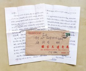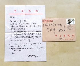 医学专家信札--2002年北京天坛医院放射科资深专家、神经放射科主任陆荣庆教授致苏州医学院著名放射学家钱铭辉教授的信札一通,关于其去美国探亲的事宜,用“北京天坛医院”公函信封从北京寄苏州,品相如图