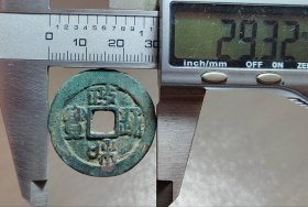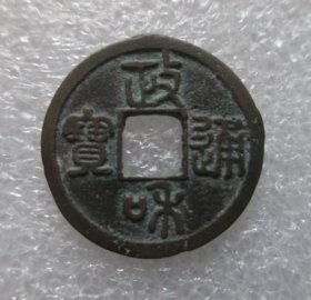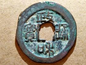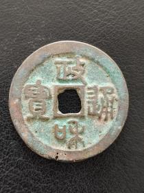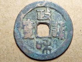 政和通宝小平篆书,狭政阔和,八级币,尺寸24左右(20250501#3,声音好,字口不错,有被洗过的,“和”字下边有铸缺磕缺,状态品相丑了低价,介意慎拍。)