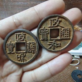 政和通宝篆书异耳宝稀少.。品相完好,直径2.43cm,厚1.3mm,稀少版别,包老保真。