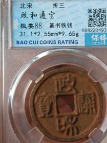 极美90分政和通宝篆书铁钱折三保粹评级盒子币,小店钱币终身保真,售后非假不退不换!编号B8822A7712