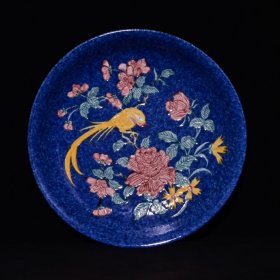 雪花兰五彩花鸟纹赏盘,高5×26.5厘米