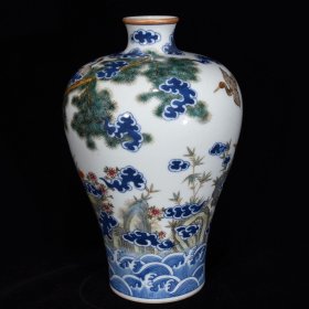 清乾隆青花粉彩松鹤延年纹梅瓶27×18