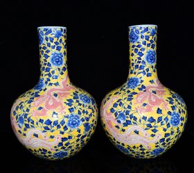 清乾隆年青花加彩龙凤纹天球瓶40*27m1200¥