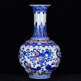 清乾隆年青花釉里红狮纹尚瓶47*27m