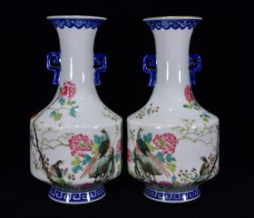 清乾隆年青花加彩花鸟纹双耳瓶27*14m