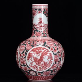 清乾隆年釉里红花鸟纹天球43*27m1950¥