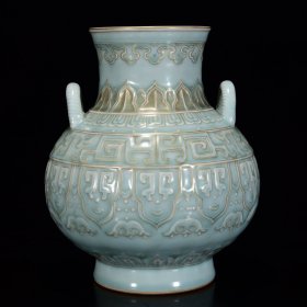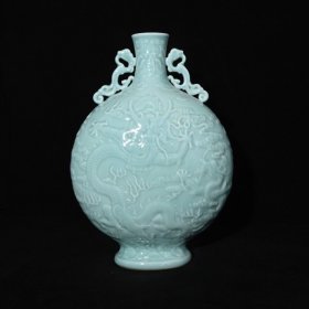 清乾隆年制单色釉浮雕龙纹扁瓶,高39×27厘米