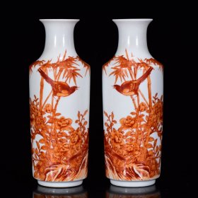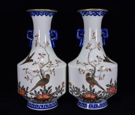清乾隆年矾红花鸟纹瓶27*10m1200¥