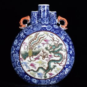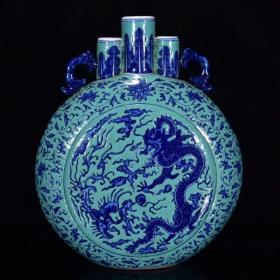 清乾隆年青花松石釉龙凤纹扁瓶27*22