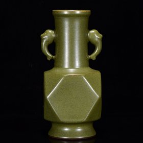 清乾隆年茶沫釉棱形象耳瓶27*12