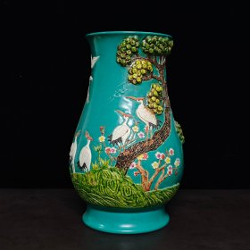 清乾隆凸雕贴塑绘松鹤延年纹敞口尊 高38厘米宽27厘米