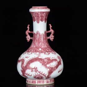 清乾隆年釉里红龙纹双耳瓶27*16m