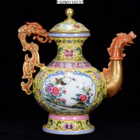 清乾隆年珐琅彩鎏金花鸟纹壶27*26