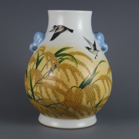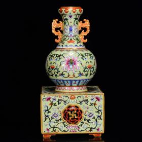 清乾隆年制珐琅彩黄金万两题诗象耳尊 尺寸:高度27㎝口径10.3㎝