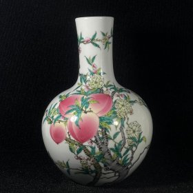 馆藏.清乾隆年粉彩九桃纹天球瓶,规格高38.5厘米肚径27厘米