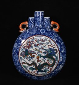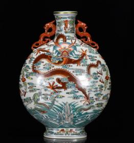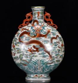 清乾隆年斗彩苍龙教子纹扁瓶39*27m