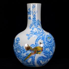 清乾隆年珐琅彩锦鸡牡丹纹天球瓶41*27m