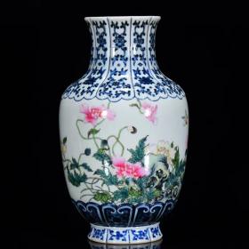 清乾隆年珐琅彩花鸟纹蒜头瓶27*14
