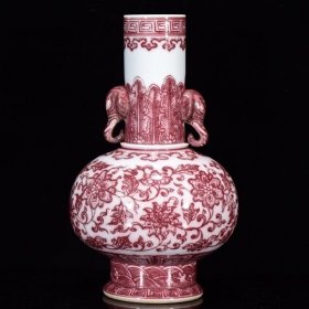 清乾隆年釉里红缠枝莲纹象耳瓶27*16厘米